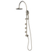The Riviera Shower System includes three multi-function body jets with on/off capability, 8-inch rain showerhead, five-function handshower, slide bar, and is made of brass and ABS construction.